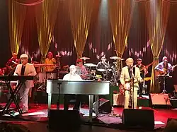 On August 30, the band released Surf's Up, which was moderately successful, reaching the US top-thirty, a marked improvement over their recent releases.[175] While the record charted, the Beach Boys added to their renewed fame by performing a near-sellout set at Carnegie Hall; their live shows during this era included reworked arrangements of many of their previous songs,[176] with their set lists culling from Pet Sounds and Smile.[177] On October 28, the Beach Boys were the featured cover story on that date's issue of Rolling Stone. It included the first part of a lengthy two-part interview, titled "The Beach Boys: A California Saga", conducted by Tom Nolan and David Felton.[178]