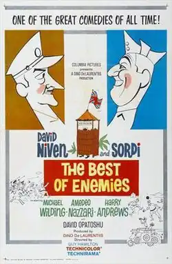 The Best of Enemies (I due nemici) is a 1961 Italian film directed by Guy Hamilton and Alessandro Blasetti set during the World War II East African Campaign, but filmed in Israel. It stars David Niven, Alberto Sordi and Michael Wilding. It was nominated for three Golden Globe awards in 1963.[2]