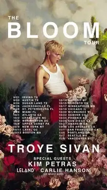 - ^ Puckett, Lily (28 May 2018). "Troye Sivan announces the Bloom Tour". The Fader. Archived from the original on 22 April 2022. Retrieved 22 May 2019.