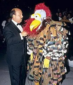 ![]() The Gobbledy Gooker (portrayed by Héctor Guerrero) is interviewed by Gene Okerlund after hatching at the 1990 Survivor Series | |