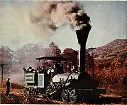 The first of three locomotives commandeered by conductor William A. Fuller, the Yonah, was portrayed in the film by the Lafayette, a 1927-built 4-2-0 replica of an identical locomotive of the same name built in 1837.[6] The original Yonah, however, did not have a 4-2-0 design, but was a 4-4-0 design that pre-dated the newer 4-4-0 designs of the other locomotives involved in the Chase.