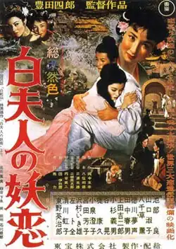 The Legend of the White Serpent (白夫人の妖恋, Byaku fujin no yōren; lit.'The Love of Madame White') is a 1956 Japanese romantic fantasy film directed by Shirō Toyoda, with special effects by Eiji Tsuburaya.[1] Adapted from the Chinese fairy tale Pai-she Chuan and the stories Story of a White Snake and White Woman's Magic by Fusao Hayashi,[1] it stars Ryō Ikebe as Xu Xian, Shirley Yamaguchi as Bai-niang, and Kaoru Yachigusa as Xiao-qing. Set during the Song dynasty, the film follows Xu Xian, a young medicine shop apprentice, who becomes involved with Bai-niang, a mysterious woman with supernatural abilities. Their relationship leads to magical and moral conflicts involving villagers, a Taoist monk, and a local moneylender.