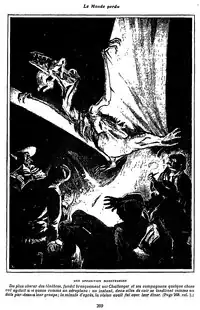 The Lost World is an adventure and science fiction novel by British writer Sir Arthur Conan Doyle recounting an expedition to a remote plateau in the Amazon basin of South America where dinosaurs and other prehistoric animals still survive, along with a tribe of vicious ape-like creatures that are in conflict with a group of indigenous Indians. The work introduces the character of Professor Challenger, who leads the expedition (and who would appear in later Conan Doyle stories), and is narrated in the first person by the journalist member (Edward Malone) of the exploration party. The Lost World appeared in serial form in the Strand Magazine, illustrated by New-Zealand-born artist Harry Rountree, during the months of April through November 1912 and also was serialized in magazines in the United States from March to November 1912.[1] Hodder & Stoughton published the first book edition in October 1912 in Great Britain (London), with printings as well in the United States (New York) and in Canada (Toronto).