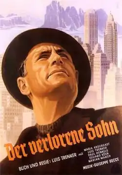 The Prodigal Son (German: Der verlorene Sohn) is a 1934 German drama film directed by Luis Trenker and starring Trenker, Maria Andergast and Bertl Schultes.[1] A South Tyrolean immigrates to New York City, but ultimately finding the U.S. is not for him, returns to his home village.