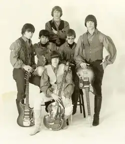 The Purple Gang formed in North Hollywood in late 1965 with a membership composed primarily of students from North Hollywood High School.[1][2] The band chose their name based on the infamous Chicago gang of the same name.[2] According to former member Marty Tryon, "I am pretty sure the name The Purple Gang came from Rosemary Richland. She told us about the gangsters in Detroit that were called the Purple Gang during the 1930s. They got us purple shirts with puffy sleeves and away we went."[2] Their original lineup consisted of Bob Corff (vocals), Alan Wisdom (guitar), Mark Landon (guitar), Marty Tryon (bass), Harry Garfield (keyboards), and Tom Atwater (drums) and their sound was influenced by bands such as the Beatles, the Byrds, and Love.[1][2] The band's lead singer, Bob Corff, knew L.A. music promoter Tony Richland, who became the band's manager, and would later be associated with Harry Nilsson.[1][2] Wisdom and Tryon had played in another local band, the Tegrams.[1][2] They made their first live appearance playing in front of a gas station, an event which, according to popular legend, prompted drummer Atwater to coin the phrase "What a gas!" [1][2]
