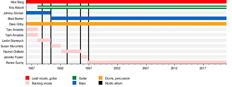- Moe Berg – lead vocals, lead guitar, songwriting (1985-present)