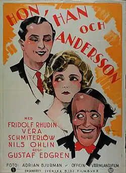 The Rivals or She, He and Andersson (Swedish: Hon, han och Andersson) is a 1926 Swedish comedy film directed by Gustaf Edgren and starring Vera Schmiterlöw, Nils Ohlin and Fridolf Rhudin.[1] It was shot at the Råsunda Studios in Stockholm. The film's sets were designed by the art director Vilhelm Bryde.