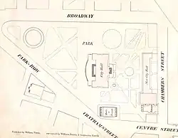 The Rotunda was demolished in 1870 as part of a renovation of City Hall Park.[3][30] Today, a bronze plaque inside the park near the intersection of Chambers and Centre streets marks the former site of the building.[4][30]