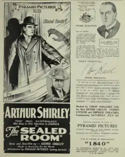 - ^ "Arthur Shirley in "The Sealed Room" Another Great Pyramid Production", Everyones., 5 (308 (27 January 1926)), Sydney: Everyones Ltd, nla.obj-574624944, retrieved 2 March 2024 – via Trove