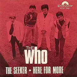 Released in the UK as Track 604036 on 21 March 1970, "The Seeker" reached number 19 in the charts. Released in the US as Decca 7-32670, it hit the Billboard charts on 11 April 1970, eventually peaking at number 44.[6] The B-side, "Here for More", is one of the few Who songs written by lead singer Roger Daltrey.[6]