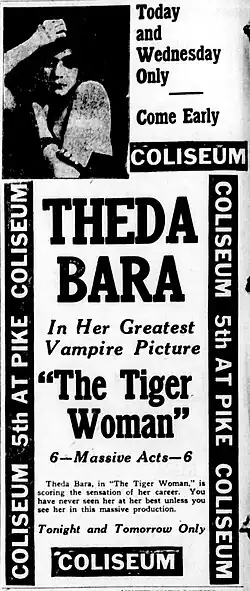 The Tiger Woman is a 1917 American silent drama film directed by J. Gordon Edwards and George Bellamy and starring Theda Bara. The film is now considered lost.[1][2]