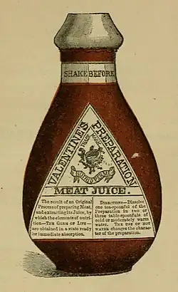 4. ^ "Richmond Magazine". Richmondmagazine.com. 20 February 2009. Retrieved 2015-05-17. " Ann Maria Gray Valentine lay ill at her family's house at 9 N. Second St. on the last day of 1870. Physicians could do no more. But her husband, Mann Satterwhite Valentine Jr., was in the basement with a chemistry set, using his sheer determination and rudimentary knowledge from college courses to concoct a mixture to revive his wife.... Mann's elixir worked, and Maria recovered. When news spread to Richmond's 51,000 residents, he learned that there was great demand for the stuff. Mann put his seven sons to work, mixing, bottling and shipping — and Valentine's Meat-Juice was born
