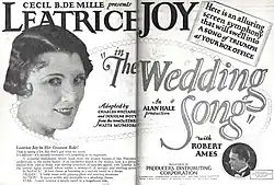 - ^ "New Pictures: The Wedding Song", Exhibitors Herald, 23 (6), Chicago, Illinois: Exhibitors Herald Company: 57, October 31, 1925, retrieved November 1, 2022
