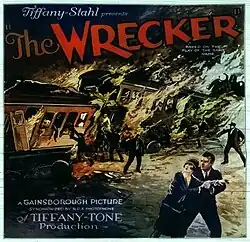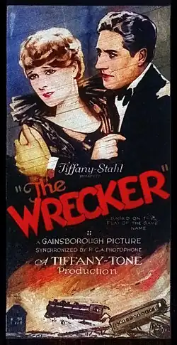 The Wrecker (German: Der Würger) is a 1929 British-German sound crime film directed by Géza von Bolváry and starring Carlyle Blackwell, Joseph Striker, and Benita Hume. The sound version was a Part-Talkie prepared by Tiffany-Stahl Productions and was copyrighted by them in 1929 in the United States making the sound version public domain. The film has two short sequences with audible dialog at the start and towards the end of the film. The rest of the film features a synchronized musical score with sound effects. Tiffany-Stahl used the sound-on-film RCA Photophone process to record the soundtrack. The film was also issued on sound-on-disc format using Tiffany-Tone (Vitaphone-type) sound discs. The film was based on the play of the same title by Arnold Ridley. It was produced by Michael Balcon for Gainsborough Pictures in a co-production with the German firm Felsom Film.