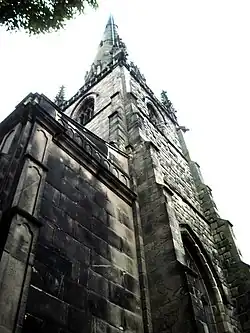 St Alkmund's, Shrewsbury. The tower and spire were retained from the medieval building when the church was largely rebuilt in the late 18th century.