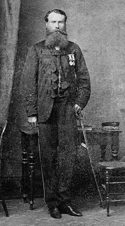 After the outbreak of the Crimean War in late 1853 Griffin volunteered for service in the British Army, being assigned initially as an assistant storekeeper in the commissariat department. In 1855 he joined the Turkish Contingent, holding a commission as a cornet.[3] The Turkish Contingent, also known as the Anglo-Turkish Contingent, was a detachment of Turkish Army infantry, artillery and cavalry regiments placed under the command of commissioned British officers.[5] Griffin later advanced to the rank of adjutant and by the end of his service was awarded two Turkish and Crimean medals.[3]
