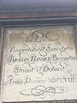 Trans; in alleviation of poverty and old age Baronet Thomas Hanmer built and endowed AD 1722