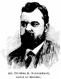 Williamson had moved to Rydalmere in 1886,[9] and in 1891 successfully organised a petition to divide the Borough of Dundas.[10] He was elected one of 6 aldermen on the resulting Borough of Ermington and Rydalmere, serving as mayor from 1891 until 1893.[3]