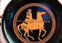 Thracian clothing refers to types of clothing worn mainly by Thracians, Dacians[1] but also by some Greeks.[2] Its best literal descriptions are given by Herodotus[3] and Xenophon in his Anabasis.[1] Depictions are found in a great number of Greek vases and there are a few Persian representations as well. In contrast to shapes and patterns we have very little evidence on the colours used.