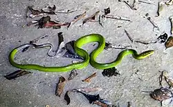 A Gonyosoma oxycephalum (Grey-tailed racer) green snake found on the island, 2009