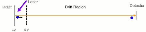 Mass resolution can be improved in axial MALDI-TOF mass spectrometer where ion production takes place in vacuum by allowing the initial burst of ions and neutrals produced by the laser pulse to equilibrate and to let the ions travel some distance perpendicularly to the sample plate before the ions can be accelerated into the flight tube. The ion equilibration in plasma plume produced during the desorption/ionization takes place approximately 100 ns or less, after that most of ions irrespectively of their mass start moving from the surface with some average velocity. To compensate for the spread of this average velocity and to improve mass resolution, it was proposed to delay the extraction of ions from the ion source toward the flight tube by a few hundred nanoseconds to a few microseconds with respect to the start of short (typically, a few nanosecond) laser pulse. This technique is referred to as "time-lag focusing" [3] for ionization of atoms or molecules by resonance enhanced multiphoton ionization or by electron impact ionization in a rarefied gas and "delayed extraction"[4][5][6] for ions produced generally by laser desorption/ionization of molecules adsorbed on flat surfaces or microcrystals placed on conductive flat surface.