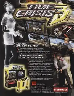 - ^ "Topics" [Commercial gun shooting game "Time Crisis 3" will be released on April 1st!]. Namco. Archived from the original on April 1, 2003. Retrieved July 8, 2024.