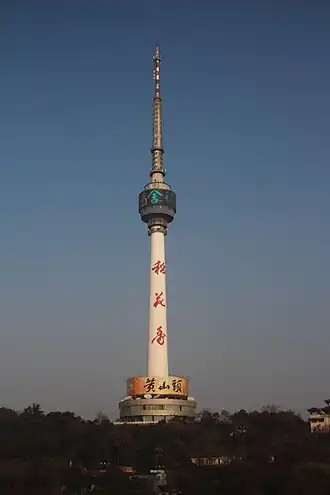 Tortoise Mountain TV Tower (Chinese: 龟山电视塔; pinyin: Guī Shān Diànshì Tǎ) is a 311.4 metres (1,022 ft) high TV Tower in Hanyang District, Wuhan, Hubei, China. It is a concrete tower equipped with an observation deck in a height of 221.2 metres (726 ft). It does not stand directly upon the hill, which is occupied by an ancient temple complex (Qing Chuan Ge (晴川閣) from the Three Kingdoms, Song, and Ming dynasties). Guishan TV Tower is China's first self-developed TV tower, opened in 1986.