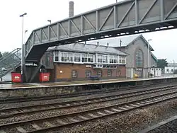 The Signal box Cafe at Totnes Railway Station, view under the footbridge towards the former pneumatic railway pumping station, July 2009