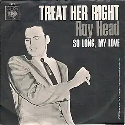 "Treat Her Right" is a soul music song, with a standard 12-bar-blues structure. Written by Roy Head and Gene Kurtz,[1] it was recorded by Head and The Traits and released on the Back Beat label in 1965.