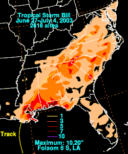22. ^ a b c d "Gulf Coast reeling from Tropical Storm Bill". USA Today. Associated Press. July 3, 2003. Archived from the original on October 17, 2012. Retrieved October 22, 2006.