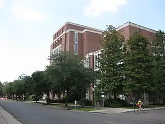 Next to Weinmann Hall on the 6200 block of Freret Street is the Law Annex, a light gray cobblestone building that houses the Center for Energy Law and the Center for Environmental Law. The Law Annex was a faculty residence before being converted for its current use.[28] Nearby is the Howard-Tilton Memorial Library, Tulane's main library; the Lavin-Bernick Center, which houses university dining facilities and the university bookstore; the Reily Student Recreation Center (a gym with indoor and outdoor swimming pools, and basketball, squash, and tennis courts); the Freeman School of Business; the Newcomb Art Gallery; and various other buildings.