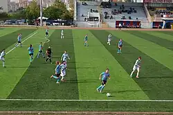 Alibey Spor (blue/black) vs 1453 Maltepe Gençlik Spor (white) in the 2015–16 Women's Third League.