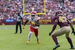A former track and field star, Hill played primarily as a return specialist as a rookie but has transitioned to strictly playing wide receiver. Following his rookie year, he received the nickname "Cheetah" in reference to his speed.[1] He was selected to the Pro Bowl in each of his first eight seasons in the league, won Super Bowl LIV with the Chiefs, and was named to the NFL 2010s All-Decade Team as a punt returner.