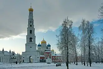 After the Russian Revolution, the monastery was closed and its grounds were given over to a children's colony of the People's Commissariat of Finance in 1920. In an effort to fight children homelessness, Felix Dzerzhinsky had it transformed into a labour commune.[1] The town was later renamed after Dzerzhinsky. Many church buildings were destroyed; others survived in a state of great disrepair. The ruined buildings were returned to the Russian Orthodox Church in 1991. The monastery has since been restored and operates several museums, including one dedicated to Nicholas II of Russia.[2] There is a new seminary on the grounds.