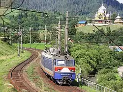 Railways in Ukraine use various gauge types. The broad gauge (1,520 mm), a legacy of Imperial Russian and Soviet times, dominates the landscape, and narrow-gauge railways (750 mm) also exist, but plans are being made to construct, restore or switch to more standard-gauge railways (1,435 mm) for better train connections with the rest of Europe.[19] About half of railways in Ukraine are electrified (some of which have been damaged during the ongoing Russo-Ukrainian War and temporarily switched to diesel trains).[20]