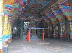 It was originally under the rule of Malayaman Malayarayan chieftains [9] and later switched hands to Miladudaiyar and again went back to Malayaman Malayarayan chieftains. Both Miladudaiyars and Malayaman Malayarayan chieftains had direct relationship with the Medieval Cholas, with their princess Sembian Mahadevi daughter of Malavarayar marrying Gandaraditya and Vanavan Mahadevi marrying Sundara Chola and gave birth to Rajaraja I, the illustrious Chola king.[10] There are multiple inscriptions in the temple from Chola, Pandya, and Vijayanagara Empire indicating donations to the temple. An inscription from Rajendra Chola II indicates that the temple was called Thiruvidaikali Alvar temple. A chieftain by name Ranakesari Raman reconstructed the whole sanctum with granite as the old structure built of bricks developed cracks. He also built five pinnacles, the veranda and the hall in front of it. Another inscription during the regime of Rajadhiraja Chola in 1171 CE indicates the donation of seven kalanju (a measure used in olden times) by a lady for the conduct of festivals of Vaikasi and Aippasi and also for the recitation of Tiruvaymoli sung by Nammmalvar in the temple.[11]
