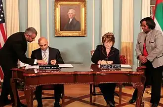 On January 15, 2009, Sheikh Abdullah bin Zayed Al Nahyan, Foreign Minister of the United Arab Emirates, and U.S. Secretary of State Condoleezza Rice signed a bilateral agreement for peaceful nuclear cooperation that enhances international standards of nuclear non-proliferation.[27]