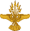 Steel Gray and Black Piping Two crossed lightning bolts, surmounted by a vertical dagger, pointed up, all gold, 13/16 inches in height and 1 7/16 inch wide[5]