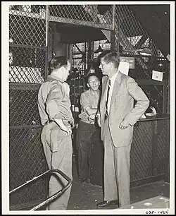 When the usually Democratic-leaning but financially unstable Boston Post planned to endorse Lodge, Joseph Kennedy arranged for a $500,000 loan so the paper would endorse his son; John Kennedy stated that "We had to buy that fucking paper or I'd have been licked."[11] The candidates debated twice. The first was on September 16, when the candidates squared off at South Junior High School in Waltham, Massachusetts before an overflow crowd of more than 1,000. The debate was largely a draw, with one reporter calling it a "gentlemanly tranquil forum." Kennedy and Lodge appeared together in October on national public affairs TV program called Keep Posted, which was broadcast live from New York City and simulcast by a Boston TV station. The topic was "Who will do more for the country, Eisenhower or Stevenson?" To many viewers, Lodge appeared uncomfortable with the medium of TV, whereas Kennedy seemed calm and relaxed.[12][13]