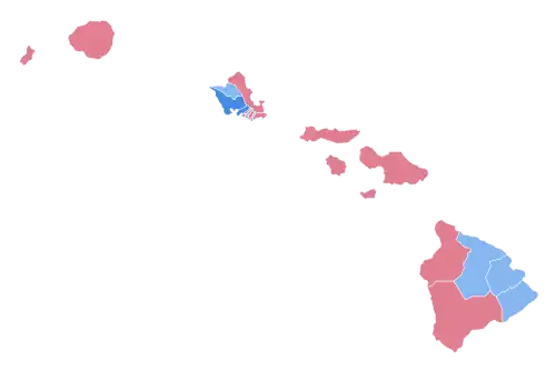 This was one of only two presidential elections since statehood that Hawaii voted more Republican than the national average. The other was 1972, when it voted 0.8% more Republican than the national average, also with Nixon on the GOP ticket.. This is also one of only two elections in which Hawaii's counties did not all back the same candidate, the other being 1980, where the winner of each county was of the opposite party as in 1960. Unlike in the 1960 election, Honolulu voting Republican in 1980 was not sufficient to single-handedly carry the state, while all three other counties voted for Jimmy Carter.[3] As of 2024, Hawaii's first presidential election remains the closest in the state's history.