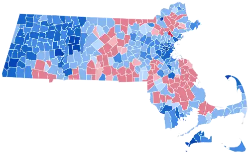 To date, this is the last time that the cities of Agawam and Palmer, and the towns of Acushnet, Blackstone, Chester, Freetown, Huntington, Leicester, Ludlow, Monroe, Monson, New Braintree, Russell, Swansea, Templeton, Wales, Ware, and Winchendon voted Democratic, and the last time the city of North Attleborough and the towns of Boxford, Boylston, Cohasset, Dover, Dunstable, Duxbury, Easton, Foxborough, Georgetown, Hamilton, Hingham, Holden, Hopkinton, Lancaster, Lunenburg, Marshfield, Medfield, Norfolk, North Andover, North Reading, Norwell, Paxton, Princeton, Sandwich, Scituate, Sturbridge, Topsfield, Upton, Walpole, Wenham, West Boylston, Westwood, Wilmington, and Wrentham voted Republican. This is also the most recent election which the towns of Kingston, Lynnfield, Northbridge, Pembroke, Raynham, Rutland, Sutton, Tewksbury, Townsend, Uxbridge, Westminster, and Whitman would vote for the national losing candidate.