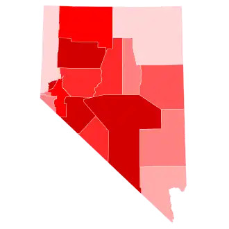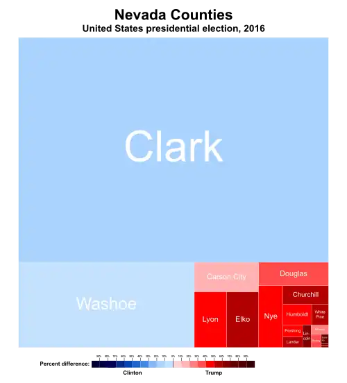 Most counties in the state of Nevada are rural, and voted heavily for Trump. As a whole, the rural counties outside of Las Vegas and Reno gave Donald Trump a 66–27 margin. However, Clinton won the state's two most populous counties, Clark County and Washoe County, which contain about 85% of the state's population, and thus won the state's electoral votes. Compared to 2012, Clinton's margin of victory was narrower in these two counties and statewide.