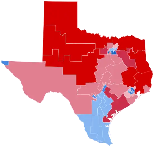 Voter turnout in the state increased to its highest level since 1992, when two Texans, George H. W. Bush and Ross Perot, were on the ballot, and the last time Texas was considered to be a battleground state.[5]