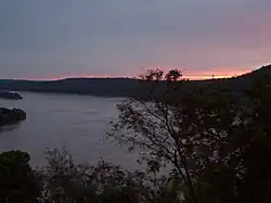 An unusual feature of the Uruguay River is a submerged canyon. This canyon formed during the Ice Age, when the climate was drier and the river was narrower. Its depth is up to 100 metres (330 ft) below the bottom of the river channel and it is one-eighth to one-third as wide as the river.[9][11] The canyon is only visible in two places, one of which is the Moconá Falls (also called the Yucumã Falls). However, the falls are not visible for 150 days per year and become more like rapids when they are not visible. Unlike most waterfalls, the Moconá Falls are parallel to the river, not perpendicular. The falls are 10 metres (33 ft) to 12 metres (39 ft) high and between 1,800 metres (5,900 ft) and 3,000 metres (9,800 ft) wide. They are 1,215 km (755 mi) from the mouth of the river.[9][11] The 17,491 ha (43,220 acres) Turvo State Park, created in 1947, protects the Brazilian side of the falls.[12]