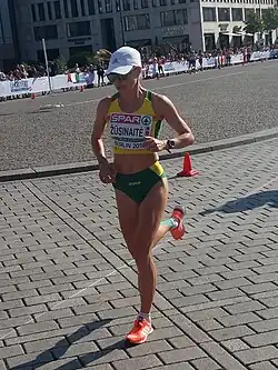 In 2012, she represented Lithuania in the European Championships, where she finished 19th. Žūsinaitė met the qualification standards for the 2015 World Championships in Athletics, but might not be selected due to the three runners per nation rule. Five female Lithuanian marathon runners met the qualification standards.[1] 2016 she broke her personal best in Hannover Marathon (2:32,50)[2] and represented Lithuania in 2016 Summer Olympics., where she finished 38th (2:35,53).
