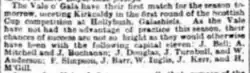 The Vale of Gala F.C. side for its 1892–93 Scottish Cup qualifying round tie with Kirkcaldy, Edinburgh Evening News, 2 September 1892