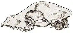 C. cuspidatus Railway Quarry "A", Cherry County, Nebraska.[2] Crookston Bridge Member.[2] Skull elements.[2] A borophagine dog.