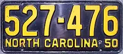 The U.S. state of North Carolina first required its residents to register their motor vehicles in 1907. Registrants provided their own license plates for display until 1913, when the state began to issue plates.[1]