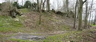 During road-widening in 1964, the main western rampart was partly uncovered. It had been assumed that most of the archaeology had been lost during the 18th-century landscaping of the area by Charles Bridgeman and others for the Duke of Queensberry.[4] However, documentary research showed that the hillfort had escaped most of the landscaping,[5] and excavations began in 2005,[6] concentrating on an area just north-east of Vespasian's Camp known as Blick Mead.