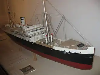 Har Zion was registered at Famagusta in the British Protectorate of Cyprus.[50] Her officers and crew were a mixture of Arab, Czech, Egyptian, German, Hungarian, Russian, and Spanish, and the ship's dog was Polish.[51] She was built in 1907 and by 1940 was in poor condition. Drummond mastered disciplinary problems among the engine room crew[52] and then in drydock in Antwerp completed enough furnace and boiler repairs for Har Zion to pass its Lloyd's Certificate inspection.[53]